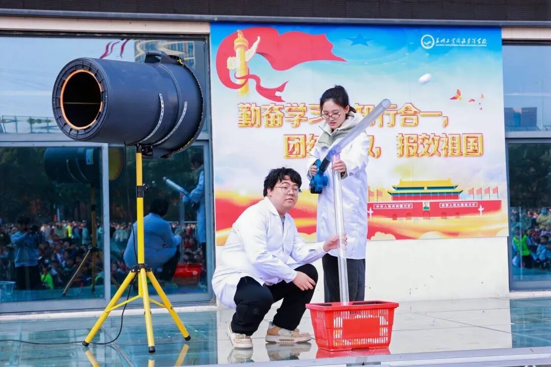 “电磁弹射幸运球”表演,将科学知识与国家科技进展相结合,让同学们近距离感受大国重器的科技魅力。当乒乓球被电磁弹射装置瞬间弹出,带着幸运与梦想飞向人群,拿到“幸运球”的同学们脸上洋溢着激动与喜悦,心中的科学种子悄然萌芽。