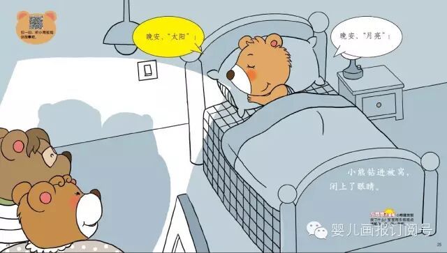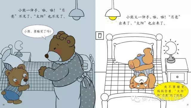 妈妈关掉了白晃晃的月亮灯。“‘月亮’闭眼了,她也要睡觉了。”