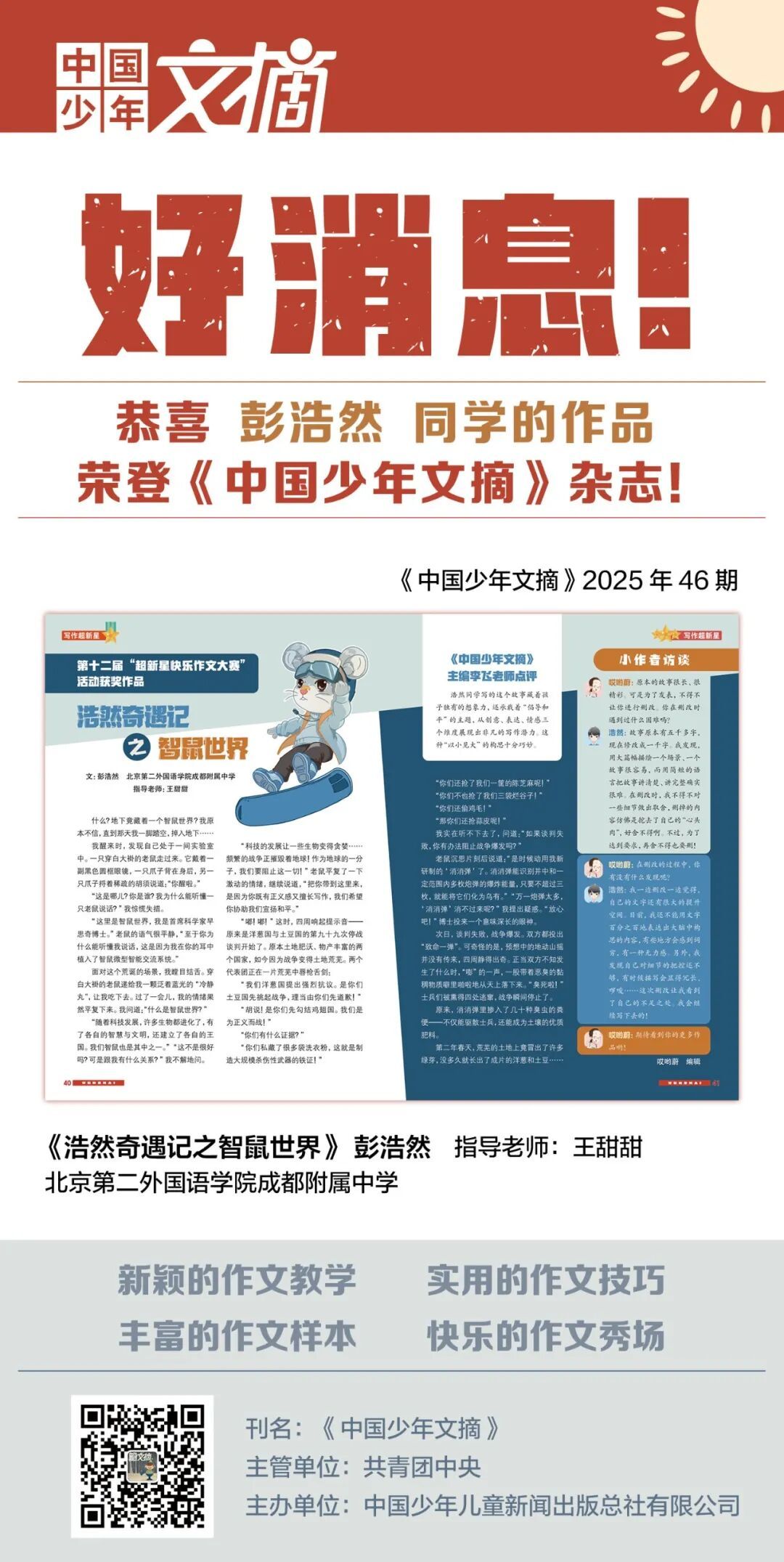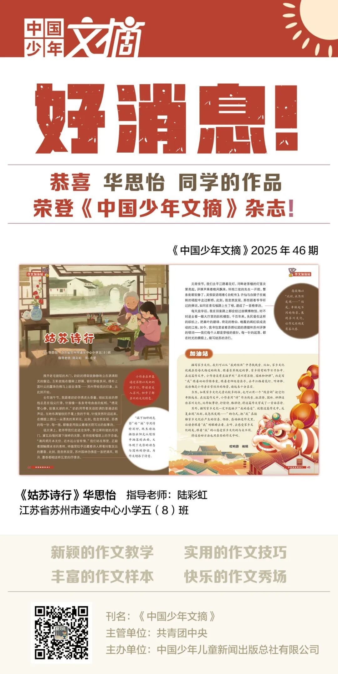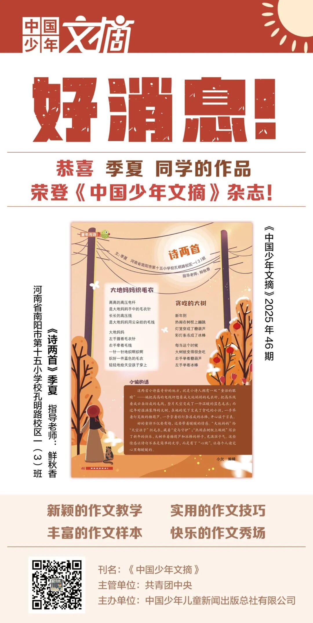 2025年12月《中国少年文摘》(快乐写作文)刊登了以下同学的作品——