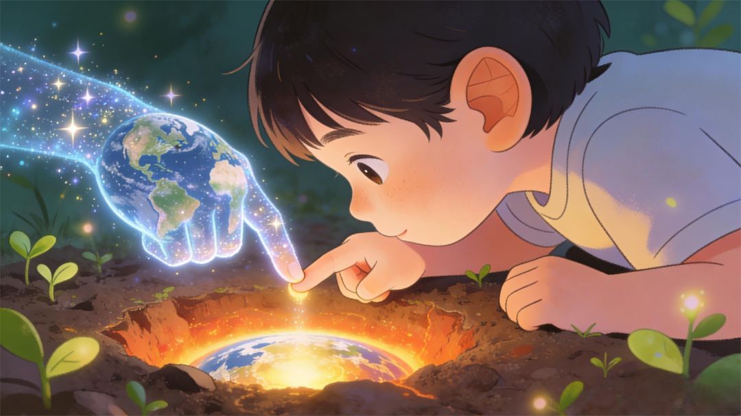 书里说,至今还没有精确计算出地球年龄,但它要比我的曾祖父还要老上一百万倍!它有滚烫的地心,像一颗巨大的烤红薯;也有薄薄的地壳,像鸡蛋壳一样一敲就碎。我们人类就像住在蛋壳上的蚂蚁,却常常忘记自己有多渺小。想到这儿,我悄悄把耳朵贴在地板上,仿佛能听见地球“咚咚”的心跳,一下一下,像在提醒我:别打扰我,我在休息!
