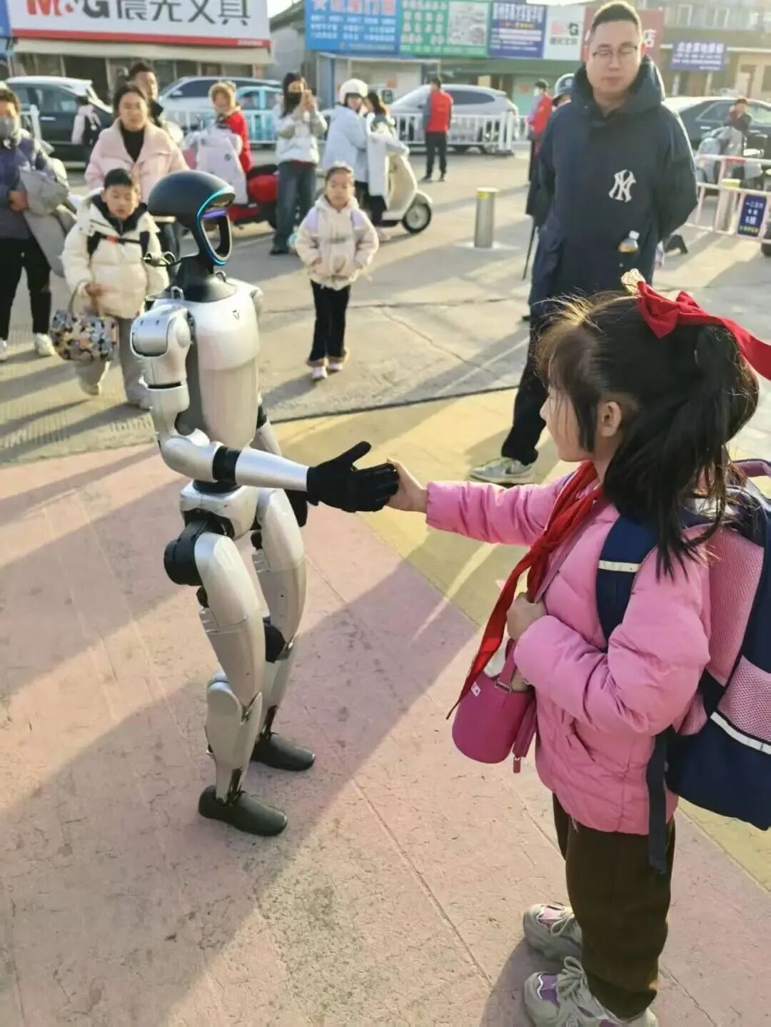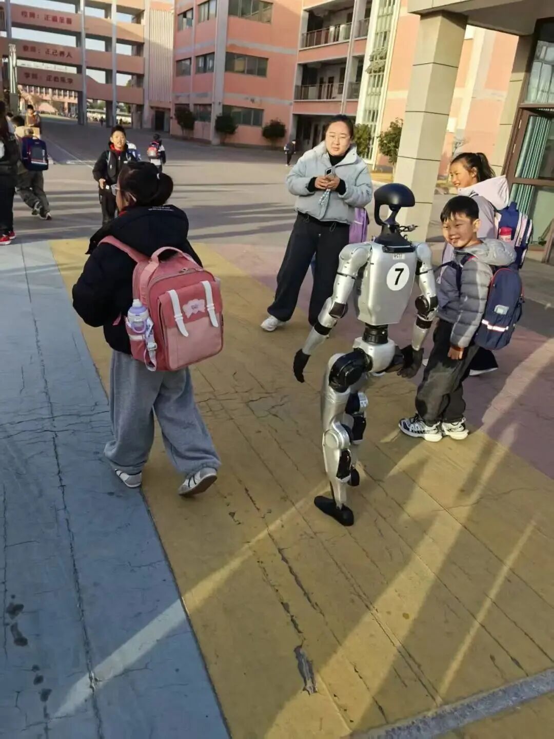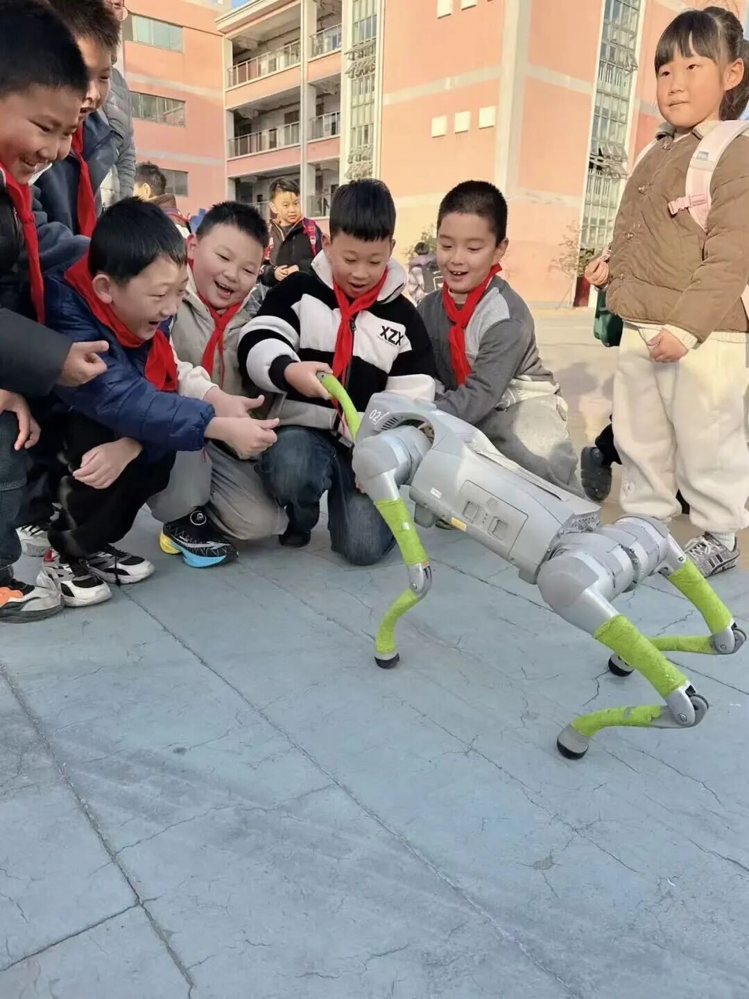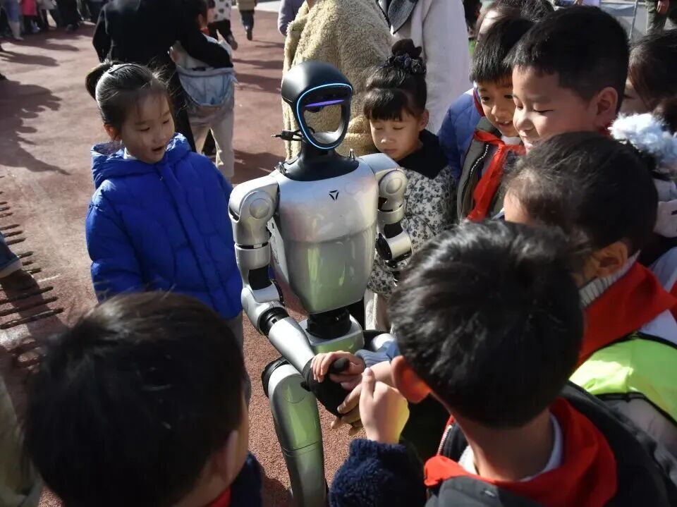 科技点亮童年岁月,创新成就未来征程,兴化市戴南中心小学首届科技嘉年华如约启幕,满校科创氛围,尽显少年探索热忱。11月28日清晨,兴化市戴南中心小学校门口洋溢着科技与欢笑的气息。憨态可掬的机器狗与灵活自如的机器人挥舞着机械臂,迎接每一位步入校园的学生。孩子们惊喜地驻足互动,有的与机器人击掌问候,有的跟着机器狗齐步前行。
