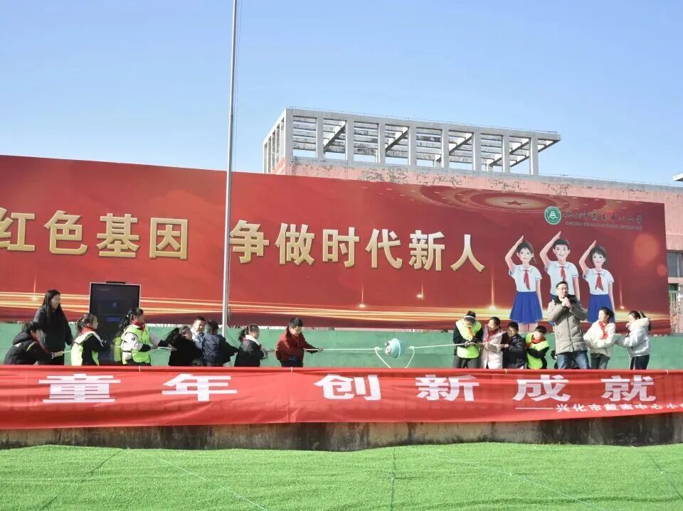 九时整,操场上响起庄严的国歌声,兴化市戴南中心小学首届科技嘉年华在五星红旗的见证下正式启幕。
