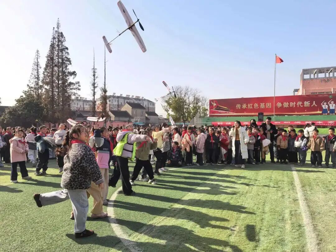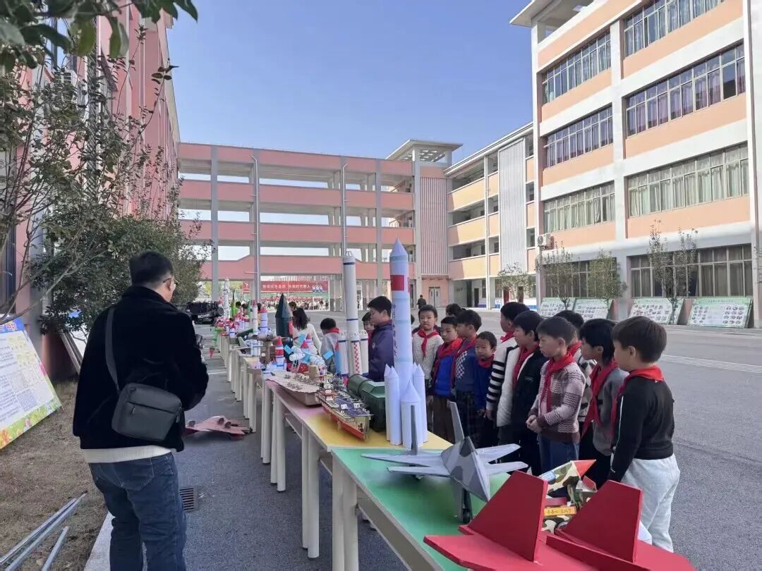 航模表演更是精彩绝伦,橡皮筋动力飞机与扑翼机在蓝天划出优美弧线;水火箭实验趣味十足,随着“3、2、1”的倒数口令,“火箭”应声腾空而起,现场欢呼不断,将开幕式的热烈氛围推向顶点。
