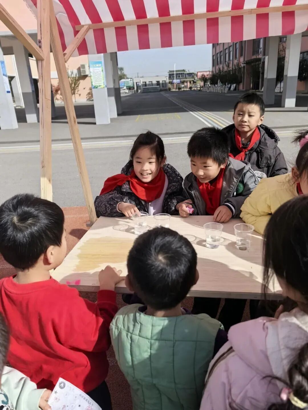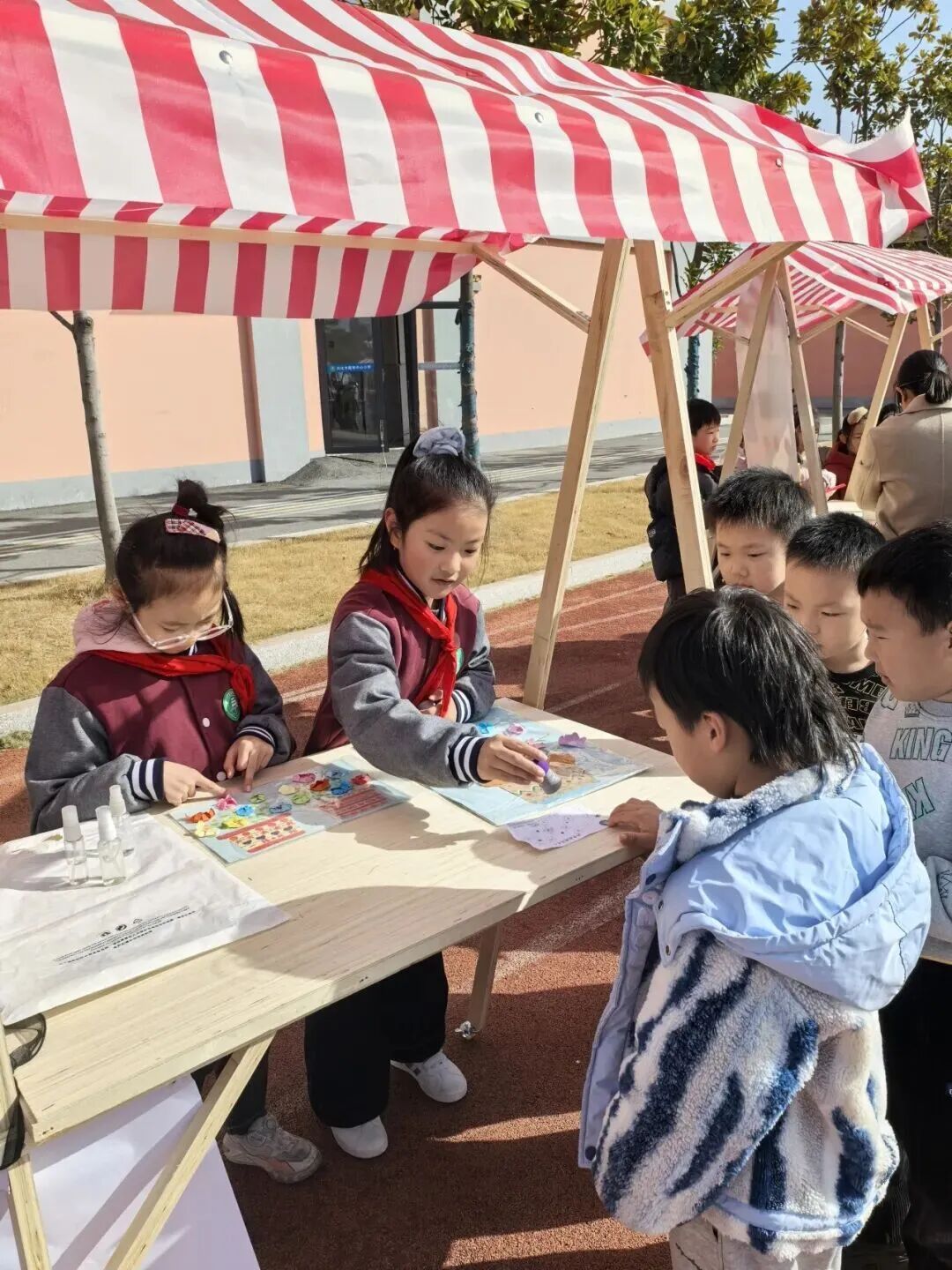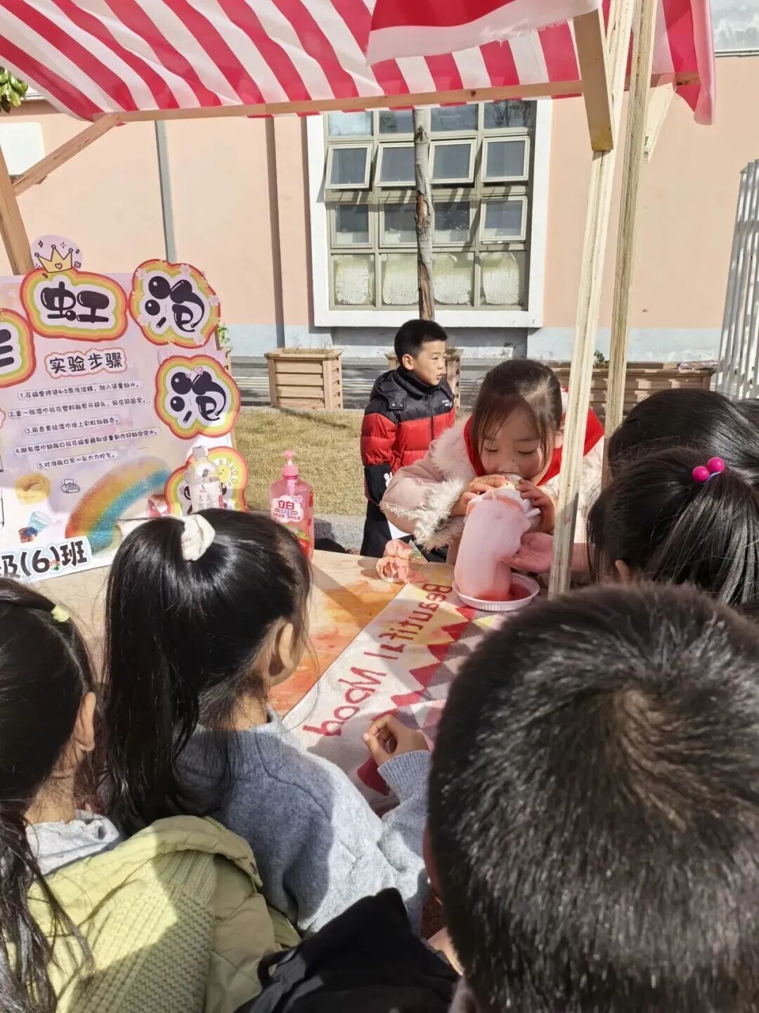 科技游园会时段,各年级分批次沉浸于充满趣味的科学乐园。三四年级搭建的实验摊位前挤满了前来挑战的小小“探索者”:有同学在“逃跑的牙签”实验摊位前屏息凝神,看着沾了洗洁精的牙签在水面迅速游动;有同学围观的“会跳舞的豆子”在醋与苏打的融合中上下翻飞,演绎着酸碱反应的活泼姿态;有同学则以“泼水成画”探索流体动力学与色彩的交融,在水墨晕染间感受科学之美……各个摊位前排起长龙,孩子们在亲手操作中体验科学原理,每一次成功的实验都引来阵阵欢呼。