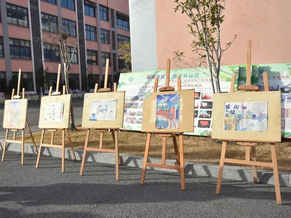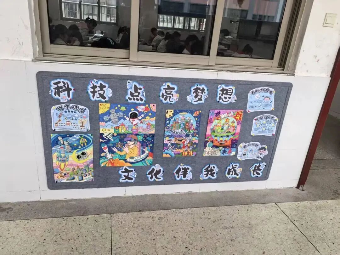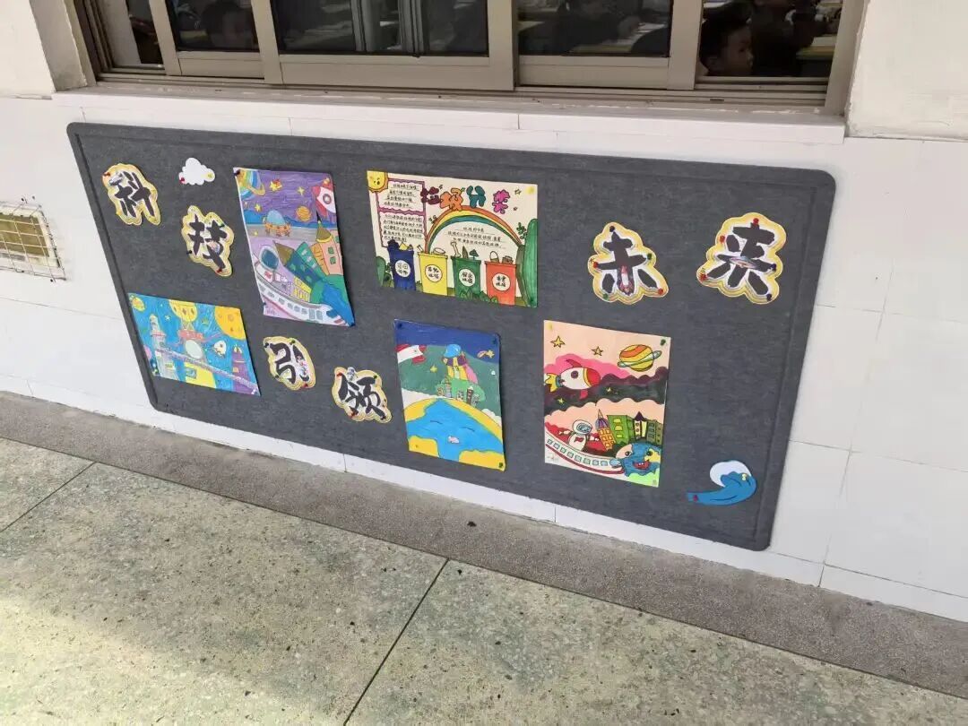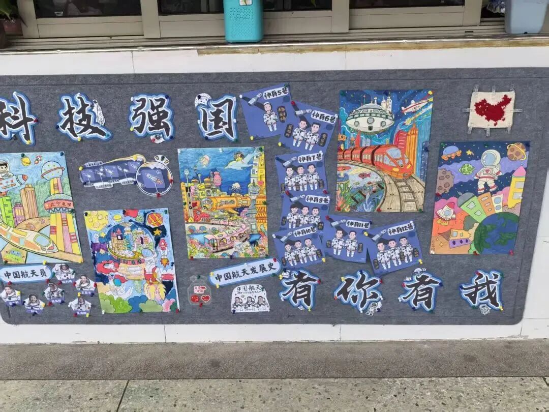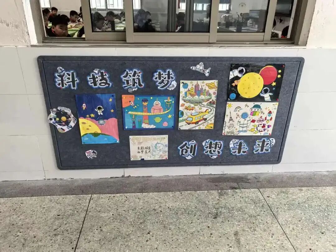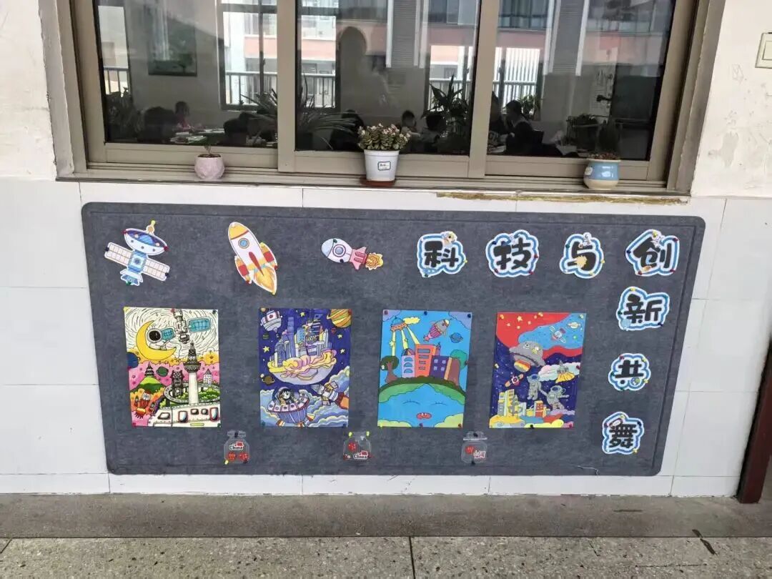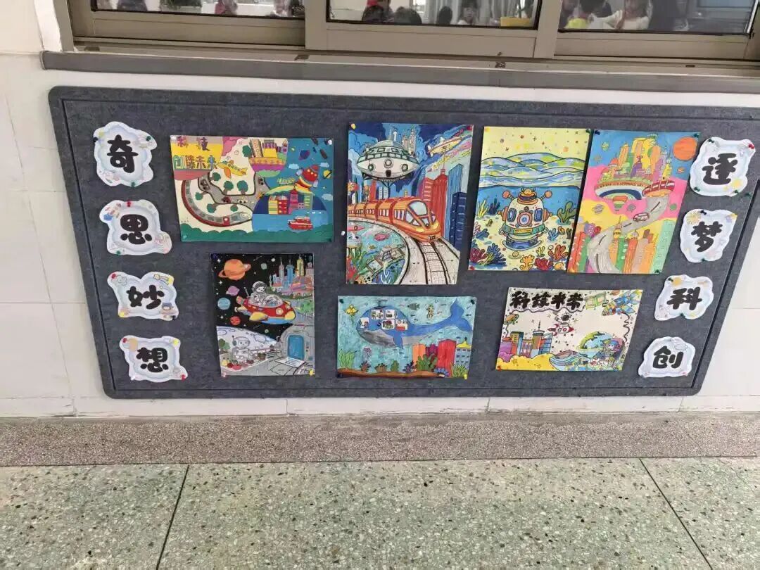漫步科技长廊,一幅幅充满想象力的科幻画作与精心设计的手抄报交织陈列,营造出浓郁而活泼的科技节氛围。