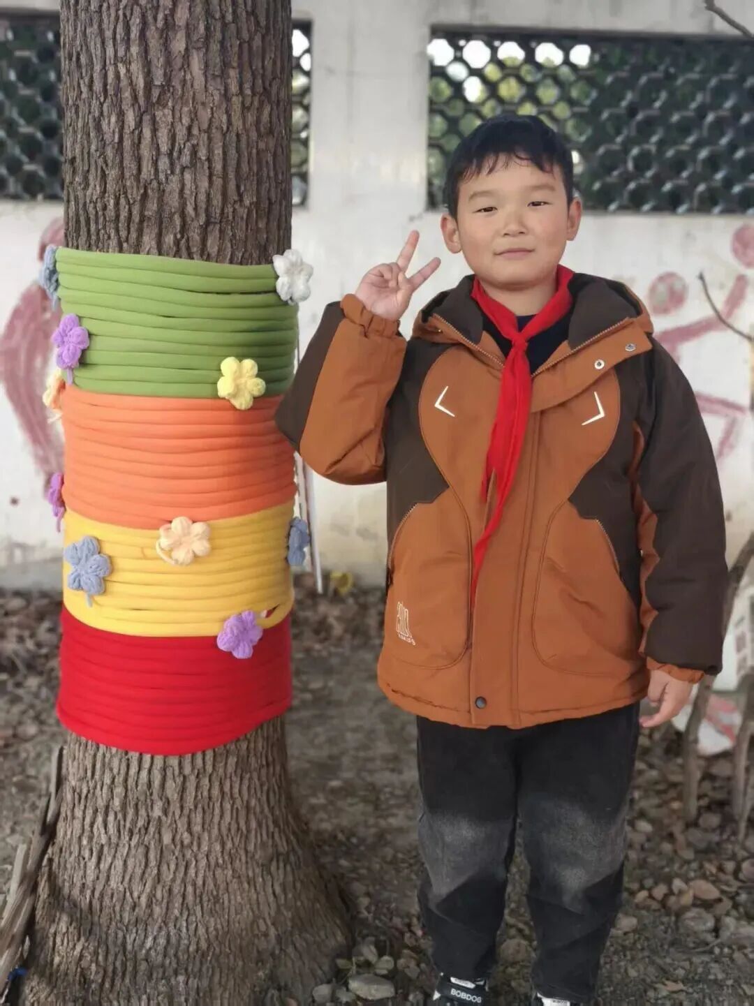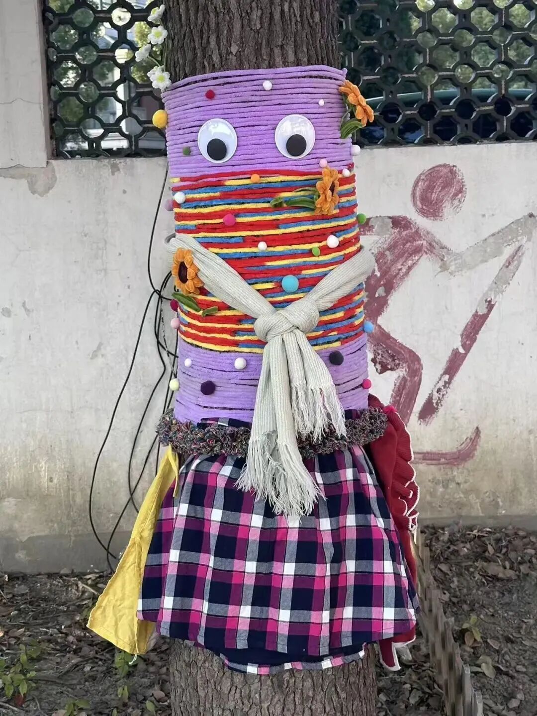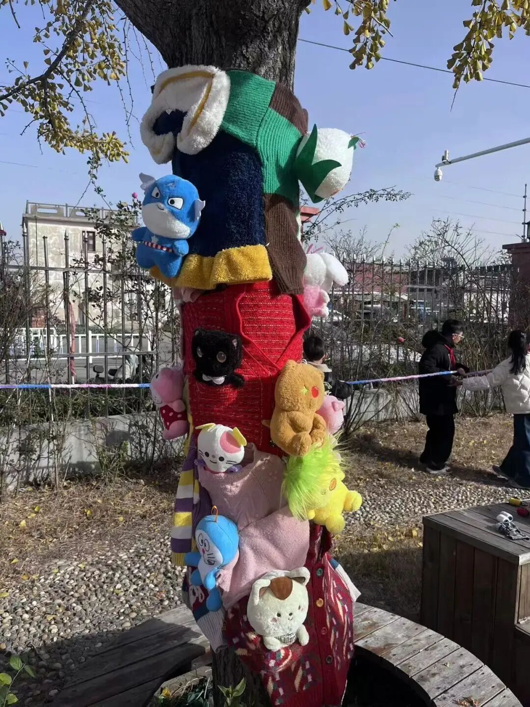 在“科技护树御寒衣”展区,学生们亲手为校园树木穿上了由旧衣物与彩色毛线编织的“冬衣”,既传递着环保理念,也为这个科技节日增添了一抹温暖的色彩。
