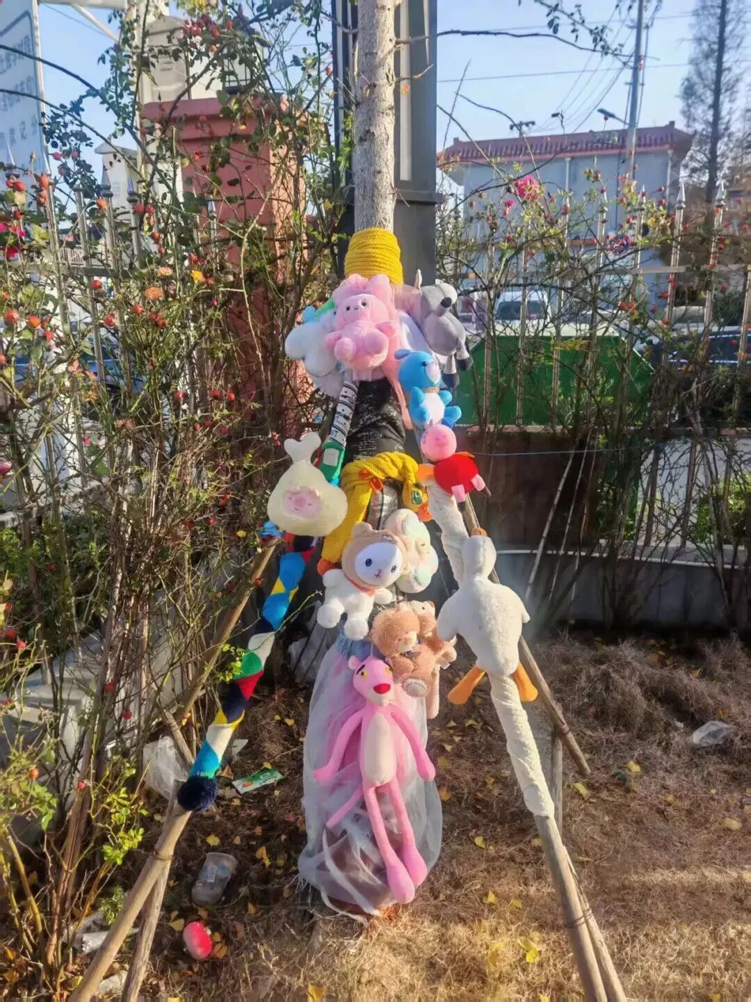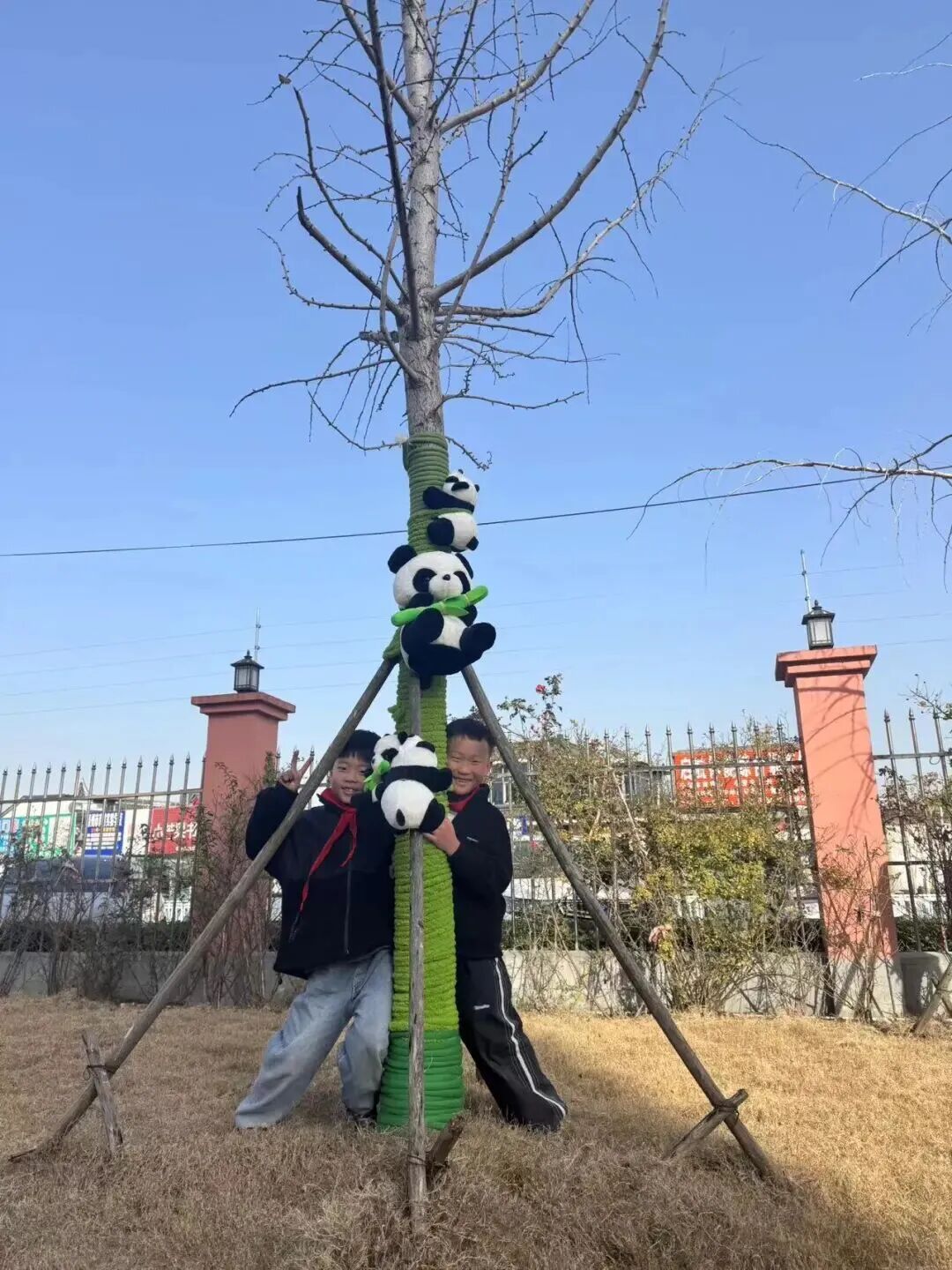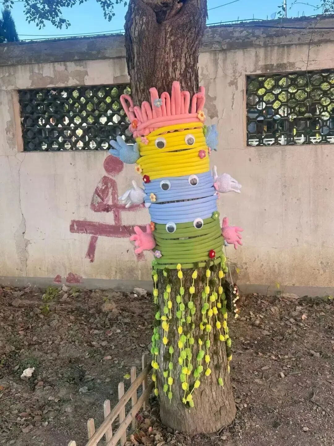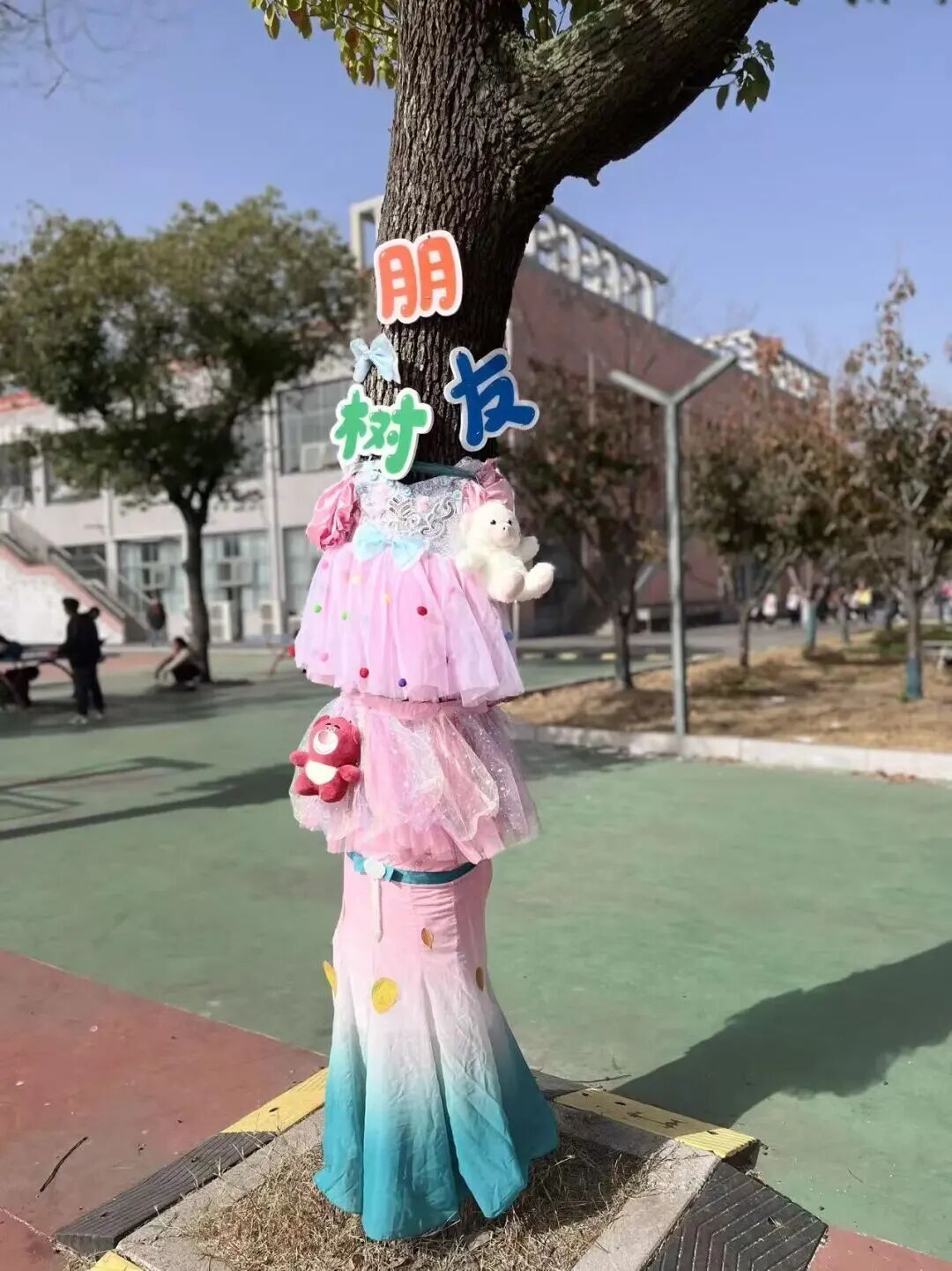 在“科技护树御寒衣”展区,学生们亲手为校园树木穿上了由旧衣物与彩色毛线编织的“冬衣”,既传递着环保理念,也为这个科技节日增添了一抹温暖的色彩。
