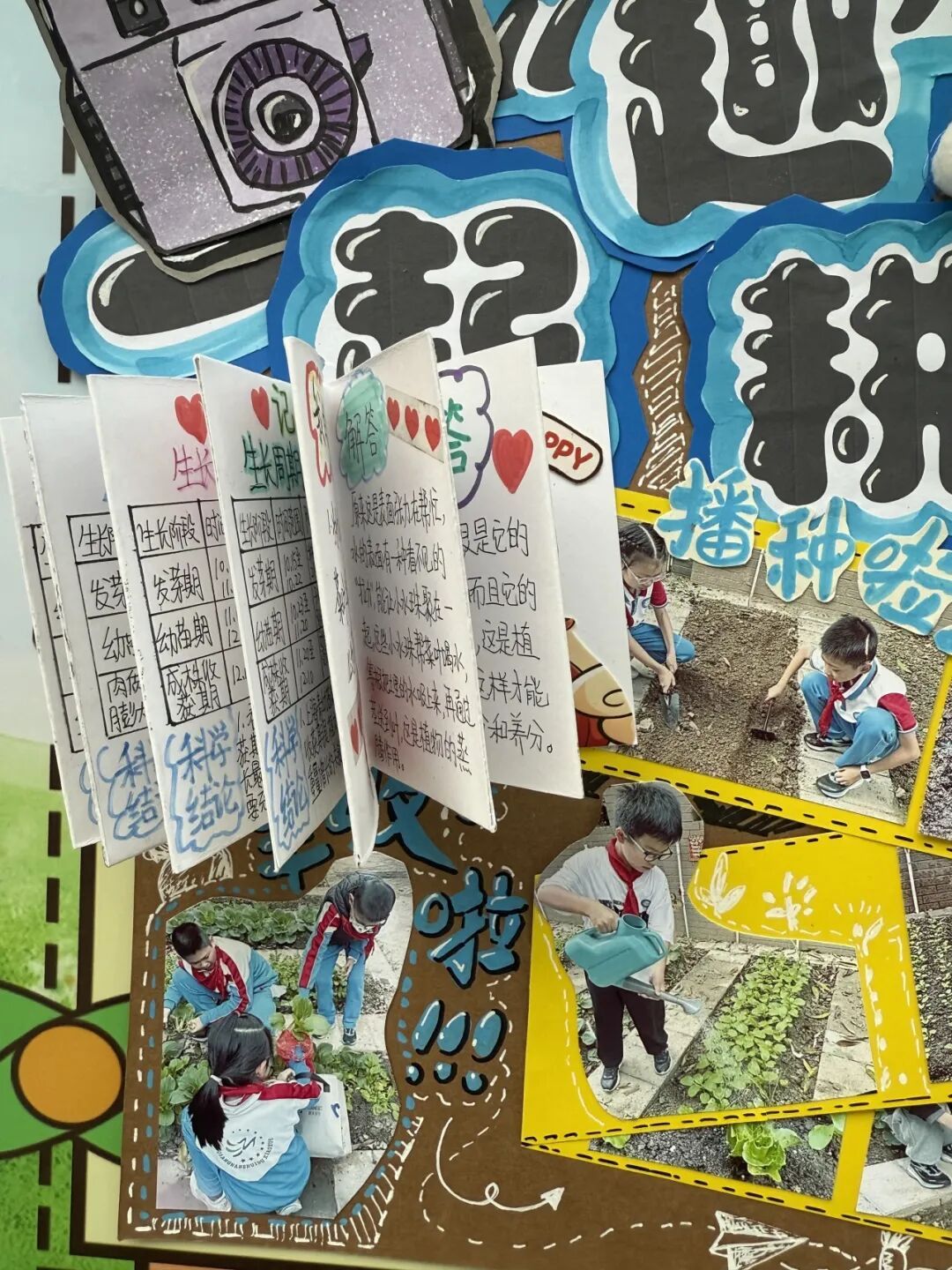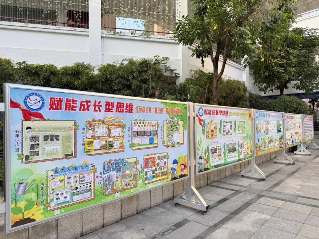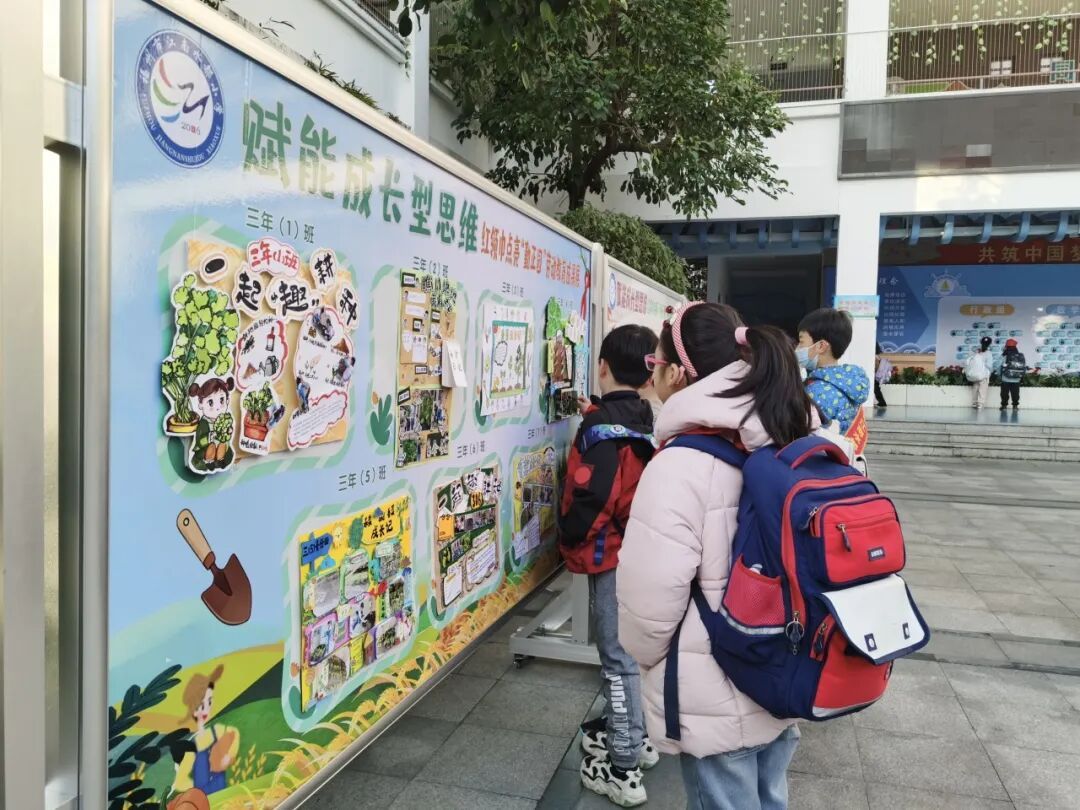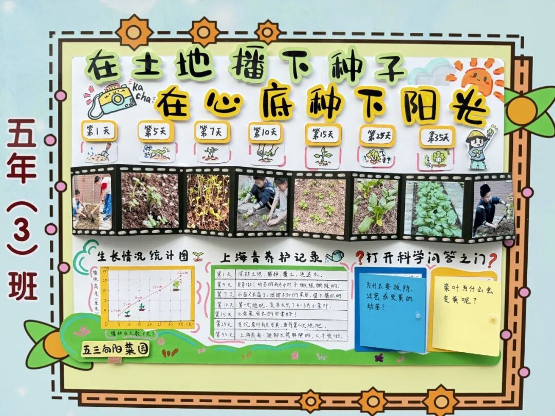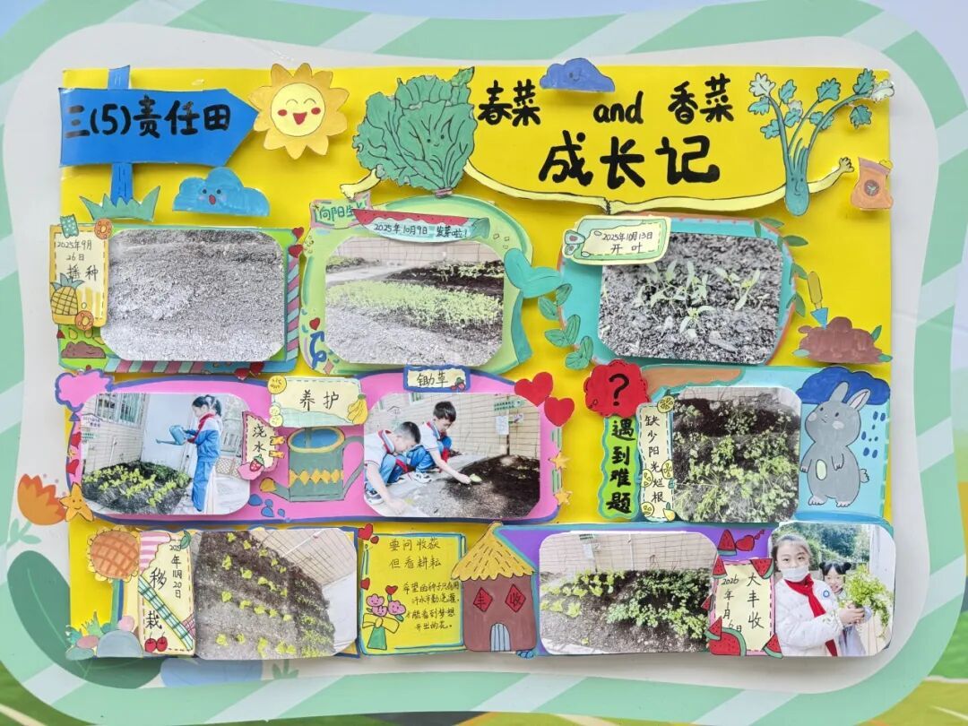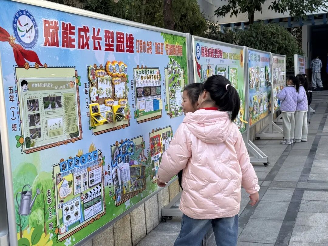 本次成果展的核心亮点,当属各班精彩纷呈的主题展板,将劳动实践与科学探究深度融合,让成长型思维在劳动中落地生根。展板以“播种—成长—丰收”为主线,串联起劳动全程的珍贵影像,更藏着同学们化身“小小科学家”的探索之旅。