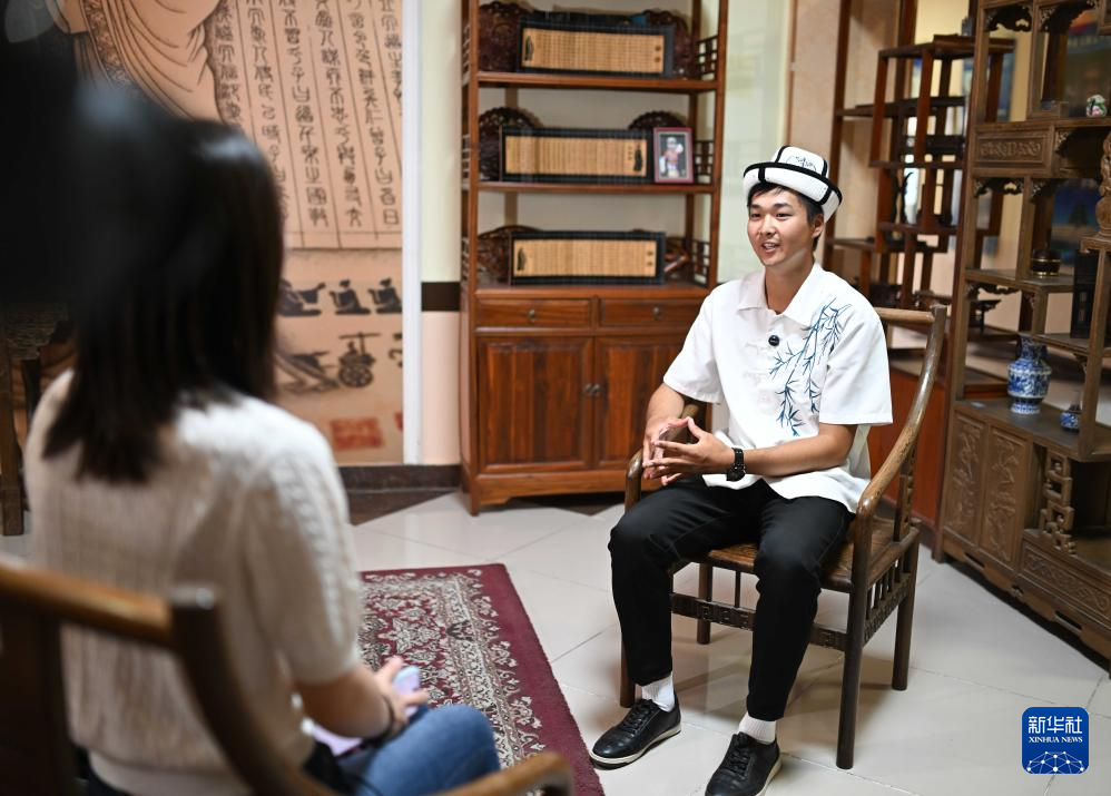 9月18日,在吉尔吉斯斯坦奥什国立大学孔子学院,学生克尔季巴耶夫接受新华社记者采访。新华社记者 李任滋 摄