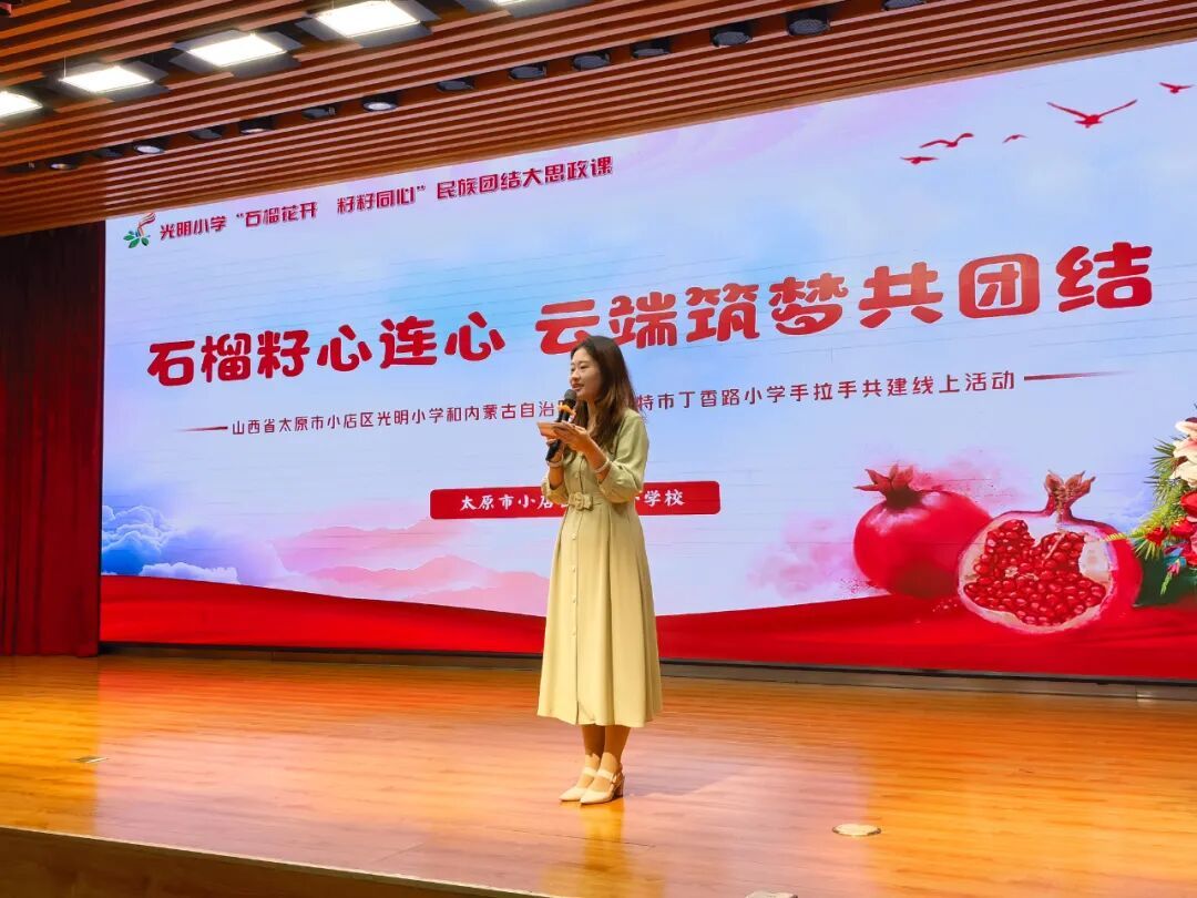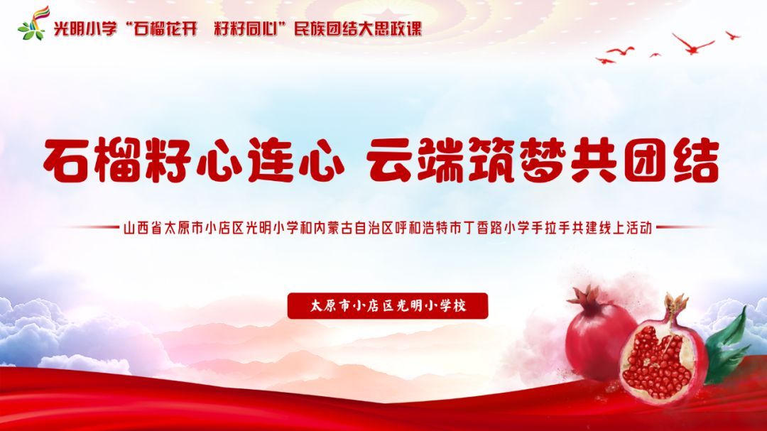 为深化民族团结教育,促进校际文化交流,2025年9月29日,山西省太原市小店区光明小学与内蒙古自治区呼和浩特市新城区丁香路小学以“云端”为桥,开展“石榴籽心连心 云端筑梦共团结”线上共建活动,两校师生通过云端,共话文化传承,共筑团结之基。