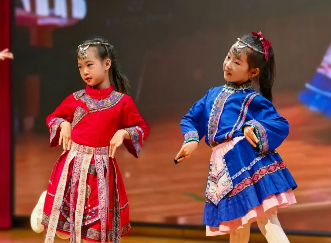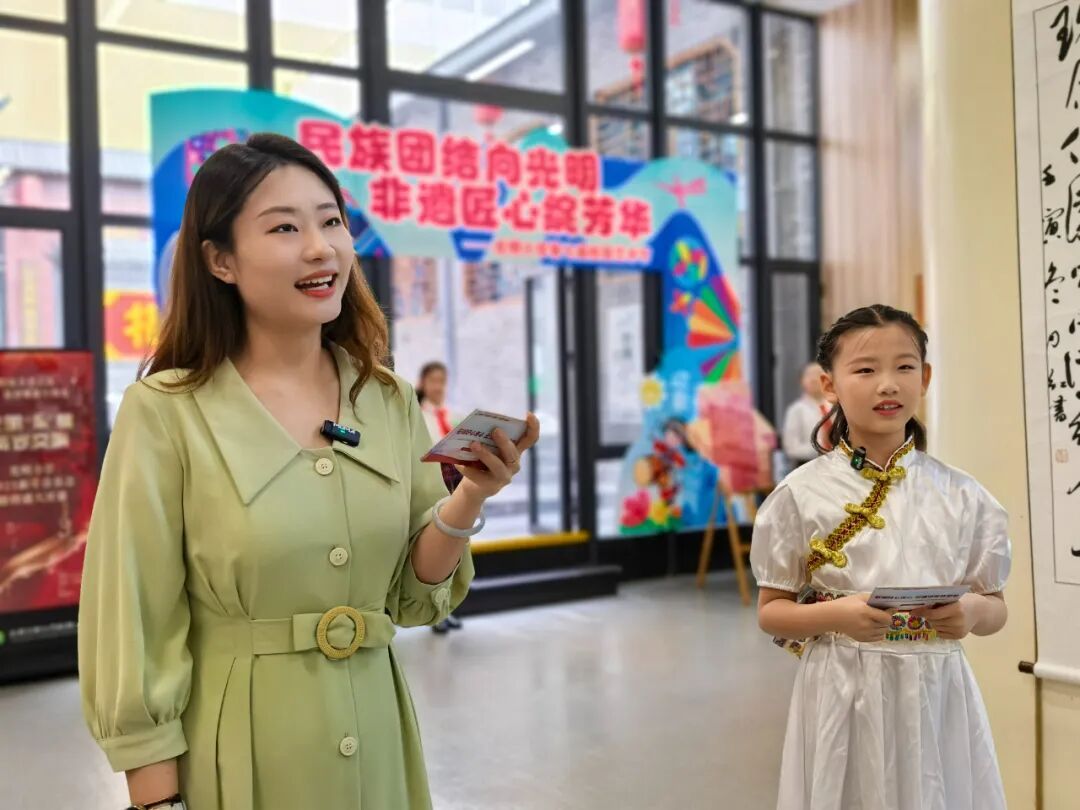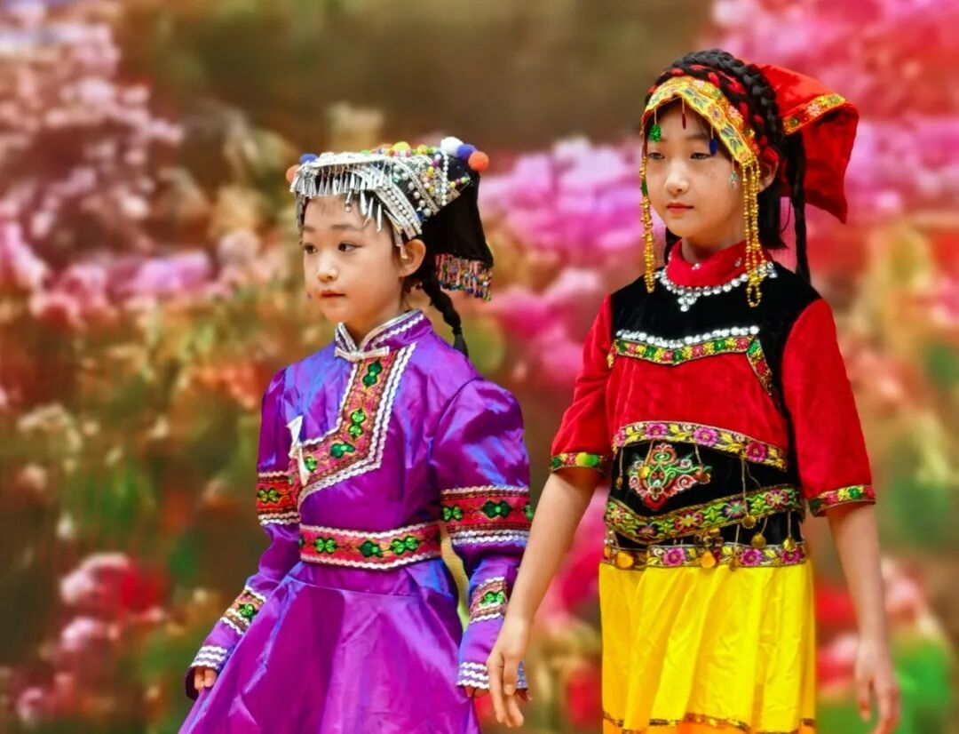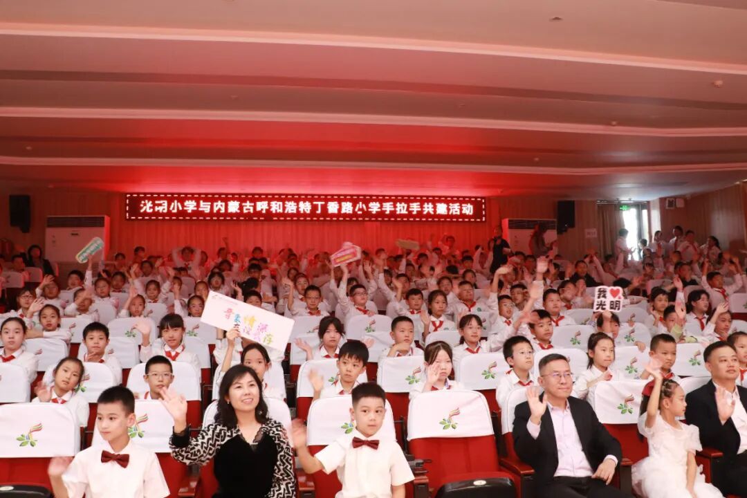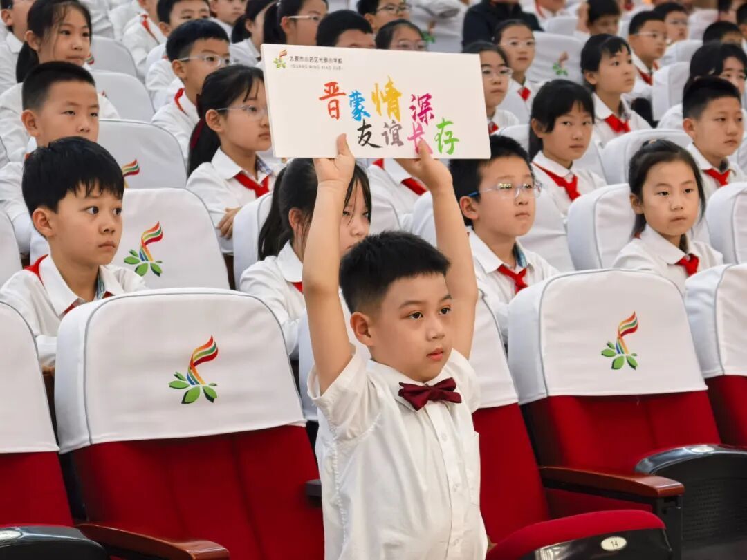 在双方学生交融互动环节,精彩节目轮番上演。光明小学的《民族服饰秀》绚丽多彩,一件件服饰承载着民族文化的记忆,如草原清风与黄河浪花在舞台相遇。