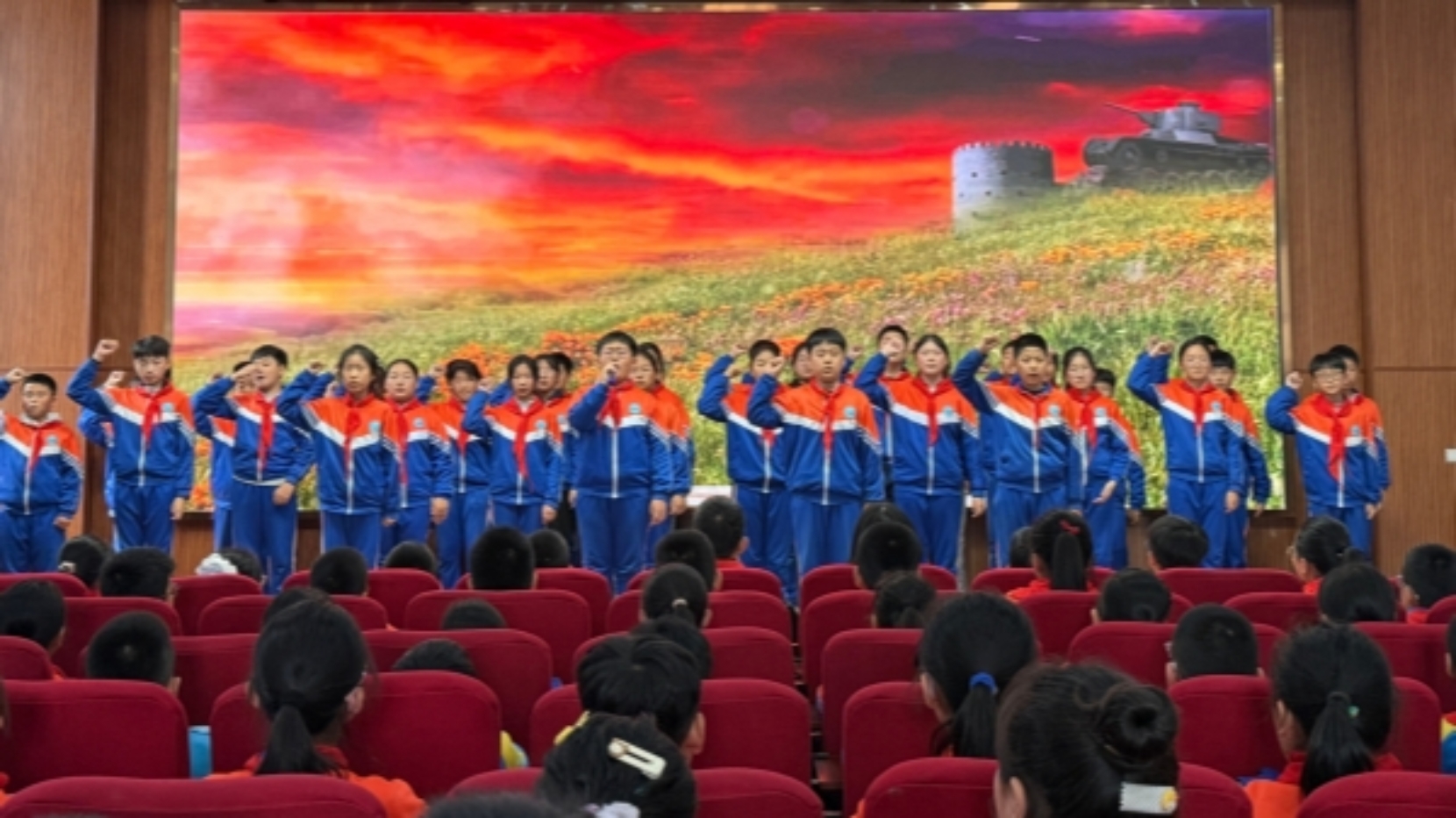 学生代表以歌曲《孤城》结合创意手势舞,用动人的旋律与有力的动作诠释长征路上的孤独与坚守,引发师生强烈共鸣。学校少工委副主任在讲话中强调,长征精神是中华民族的精神丰碑,希望全体师生以英烈为榜样,在新时代征程中勇担使命、砥砺前行。“红军不怕远征难,万水千山只等闲……”在领诵学生的带领下,全体师生齐声朗诵毛泽东《长征》诗篇,铿锵有力的诗句回荡会场,将活动推向高潮。